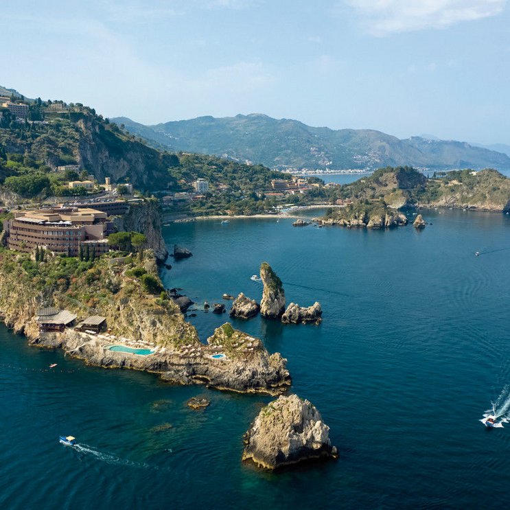 Ihre Vorteile: Direkt am Meer auf einer Landzunge mit wunderschönem Blick auf die „Isola Bella“ und den Ätna