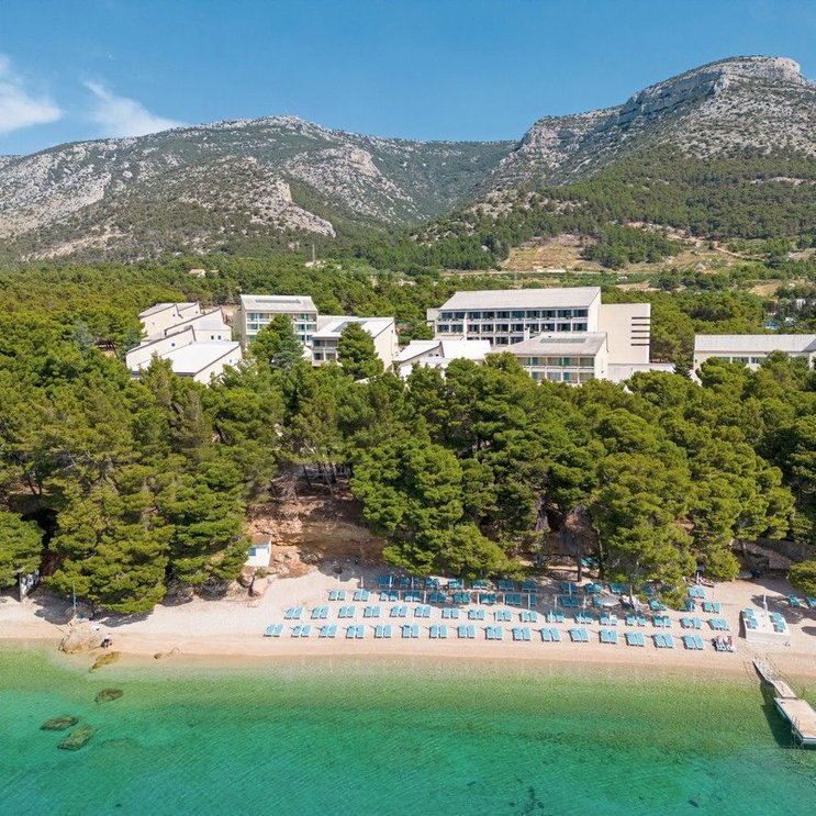 - Das Hotel besteht aus mehreren Pavillons, die nach Art eines kroatischen Dorfes um die Piazzetta gruppiert und aus landestypisch weißen Steinen erbaut sind.