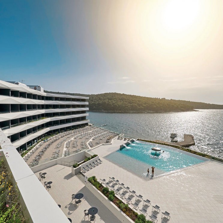 Blaumachen inmitten der Adria. Die Inselidylle genießen mit Blick auf den blauen Horizont und den Berg Mosor. Zum Strand sind es nur wenige Schritte. Die elegant eingerichteten Zimmer sind das perfekte Urlaubszuhause!