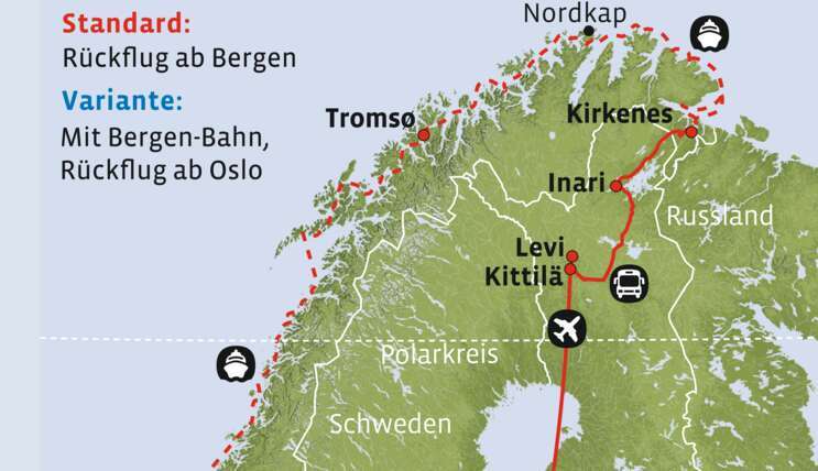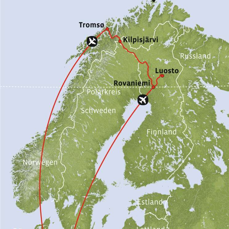 Im Winter über den Polarkreis hinaus reisen und unter klarem Himmel das Schauspiel der Aurora erleben.