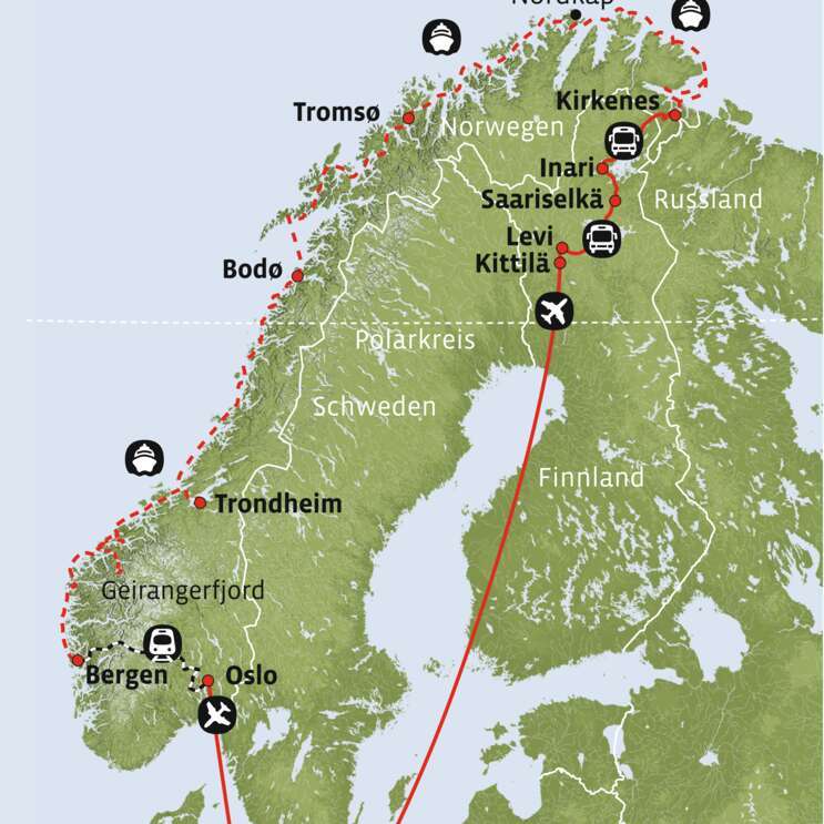 Norwegen erschliesst sich unterwegs am besten – in langsamen Kurven entlang der Fjorde, auf Schienen durch Hochebenen oder mit dem Schiff entlang der Küste. Zwischen kleinen Städtchen, gewaltigen Landschaften und leisen Naturwundern zeigt sich das Land in seiner ganzen Weite. Mit Kuoni entstehen Rundreisen, die Wege mit Bedeutung verbinden – persönlich geplant, achtsam begleitet und mit Raum für Orte, an denen Norwegen seine stille Grösse entfaltet.