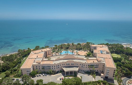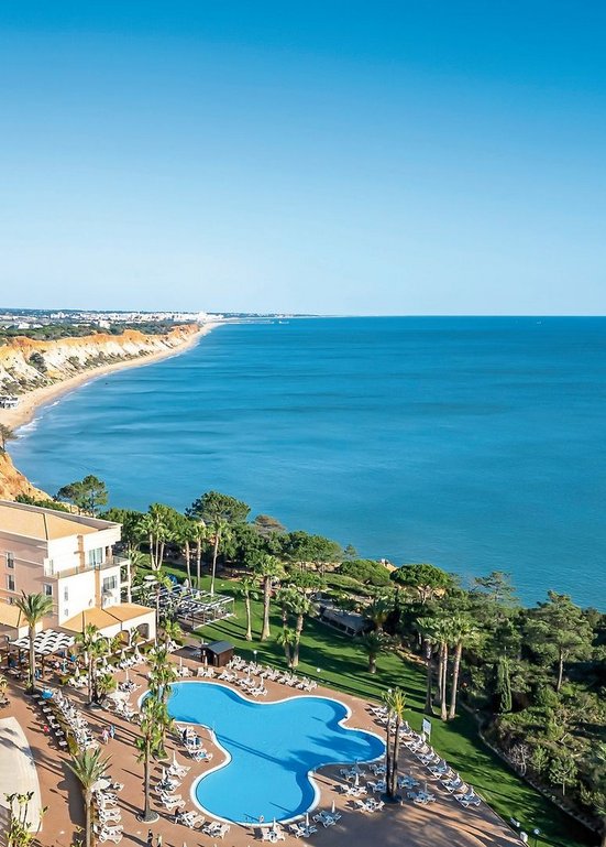 Mit seiner fantastischen Lage auf den Klippen oberhalb des Falésia-Strandes, mit herrlichem Blick auf das Meer und in grüner Umgebung bringt das Hotel alle Zutaten für einen gelungenen Badeurlaub mit.
