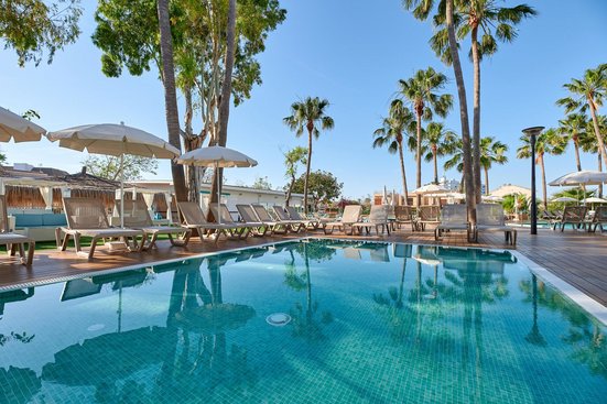 Helle und freundliche Zimmer in den Farben von Meer und Strand, entspanntes Ambiente und hoher Komfort: ein ausgezeichnetes Hotel mit Blick auf das Mittelmeer und den See Es Llac Gran!