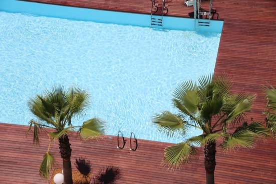 - 1 Pool: Sonnenschirme, Liegen, Badetuch
