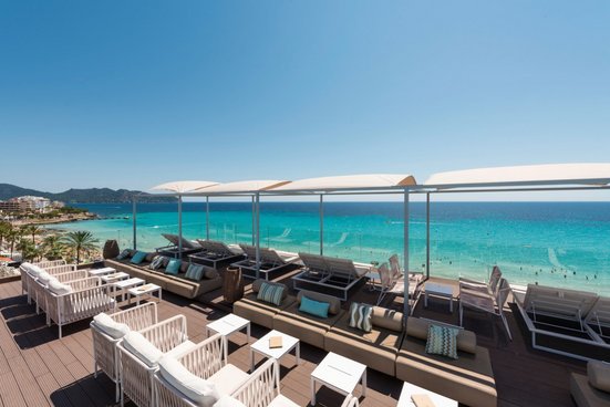Perfektes Designhotel für alle ab 18 Jahre: Der Blick von der Chill-out-Dachterrasse auf das tiefblaue Meer ist einfach traumhaft. Romantisch wird‘s abends beim Sonnenuntergang – nicht verpassen!