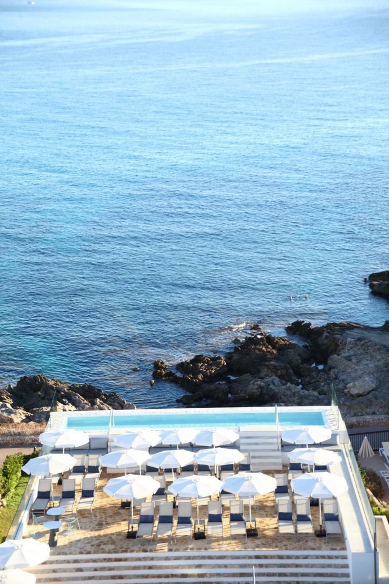 Auf den Felsen über der Cala-Agulla-Bucht gelegen, bietet sich Ihnen ein wunderbarer Panoramablick über das Meer bis zum Horizont! Besonders genießt man ihn vom oberhalb des Meeres gelegenen Infinity-Pool. Übrigens: In diesem Hotel sind Erwachsene unter sich!
