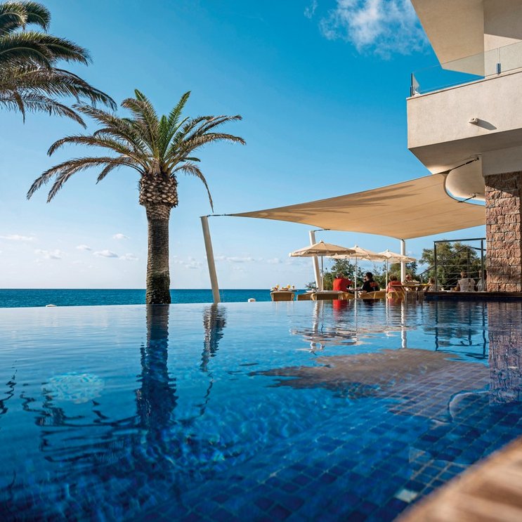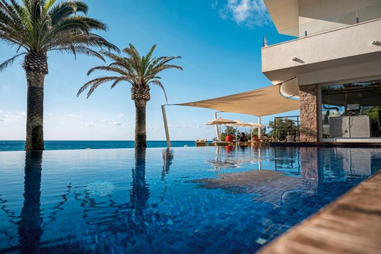 Chill-out-Terrasse mit Infinity-Pool und herrlichem Blick auf das Meer