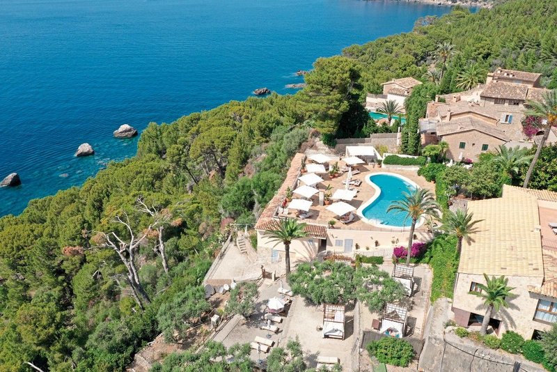 In ruhiger Lage und umgeben von Pinien und Olivenbäumen verbringen Sie Ihren Urlaub auf Mallorca. Genießen Sie den Blick auf das wunderschöne Meer vom Hotel im prachtvollen Tramuntana-Gebirge.