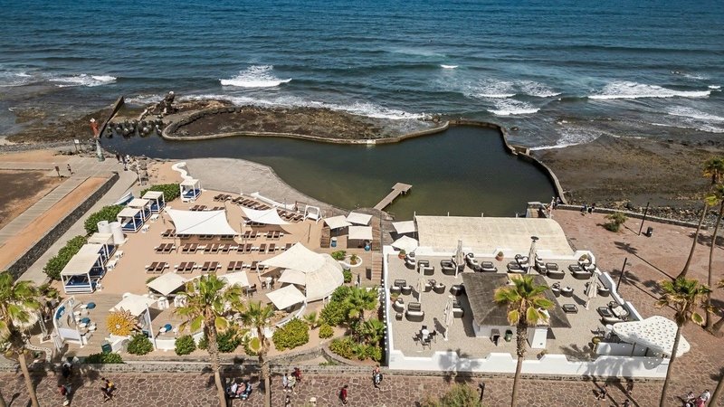 - Sandstrand: leicht abfallend, öffentlich, von der Anlage getrennt durch Promenade, Sonnenschirme (kostenpflichtig), Liegen (kostenpflichtig), Beach Club