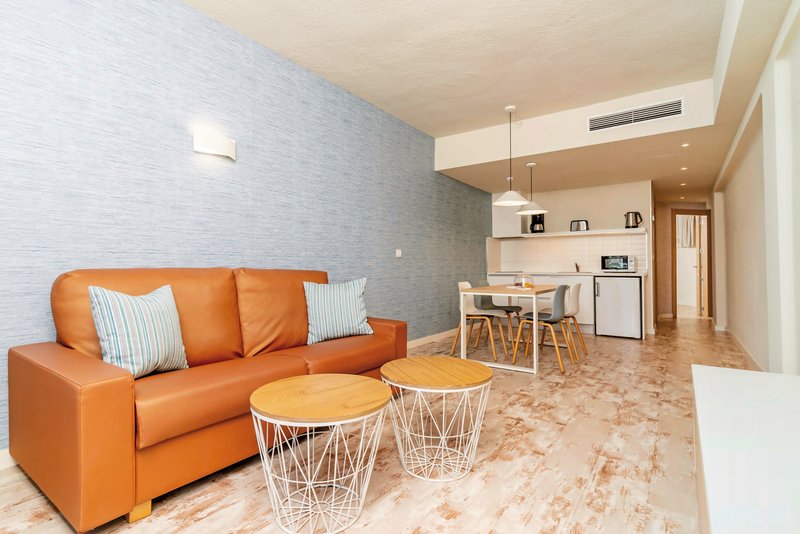 - 71-80 qm, Appartement, Meerblick, 2 separate Schlafzimmer, kombinierter Wohn-/Essraum, 1 Bad, Dusche, Bademantel, Badeslipper, Haartrockner, Kosmetikspiegel, Klimaanlage, Safe (kostenpflichtig), 1 TV (Sat-TV, deutschsprachiges Programm, Flachbildschirm), Kochnische, Wasserkocher, Mikrowelle, Kaffeemaschine, Toaster, (täglich Kapselauffüllung), Kaffee/Tee, Kühlschrank, Balkon oder Terrasse 51-60 qm (möbliert), Kopfkissen-Menü, Aufdeck-Service, private Liegen, Willkommenspaket im Kühlschrank, Badetücher auf dem Zimmer (ohne Kaution), Frühstück im Themenrestaurant, 2x Abendessen im Themenrestaurant pro 7 Nächte Aufenthalt (auf Voranmeldung)