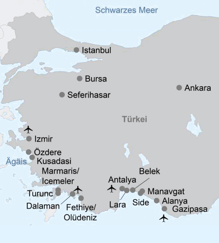 Einreisebestimmungen: Sie können für bis zu 90 Tage visumfrei in die Türkei einreisen. Die Vorlage der Identitätskarte reicht aus. Diese sollte bis mindestens 60 Tage über das geplante Ausreisedatum hinaus gültig sein.