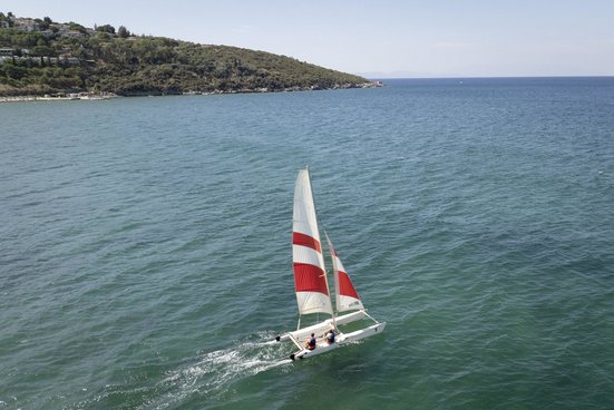 - Sandstrand: ca. 150 m lang, Sonnenschirme, Liegen