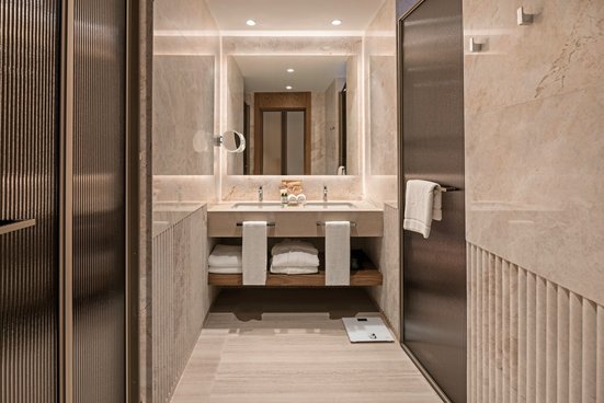- 46-50 qm, Familien, Bettwäsche, Handtücher und Matratzen aus 100% Bio-Baumwolle, 2 separate Schlafzimmer, optisch getrennter Wohn-/Schlafraum (mit Schiebetür), Schreibtisch, 2 Einzelbetten, Doppelbetten (1 Doppel- oder 2 Einzelbetten), Dusche, WC, Bademantel, Badeslipper, Haartrockner, Kosmetikspiegel, Laminatboden, Klimaanlage, Minibar, Auffüllung täglich, Safe, Bügelbrett, Bügeleisen, TV (Sat-TV), Wasserkocher, Kaffeemaschine, Balkon, Kopfkissen-Menü