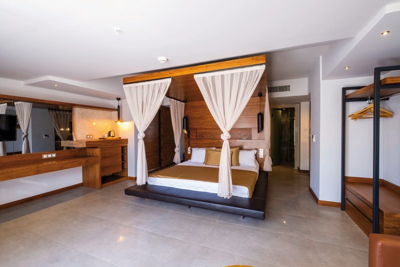- 31-35 qm, Doppel, Dusche, WC, Badeslipper, Haartrockner, Kosmetikspiegel, Laminatboden, Klimaanlage, zentral gesteuert, Minibar, Auffüllung täglich, Softdrinks, Safe, TV (Sat-TV, Flachbildschirm), Wasserkocher, Kaffee/Tee, Balkon oder Terrasse, Whirlpool, Kopfkissen-Menü