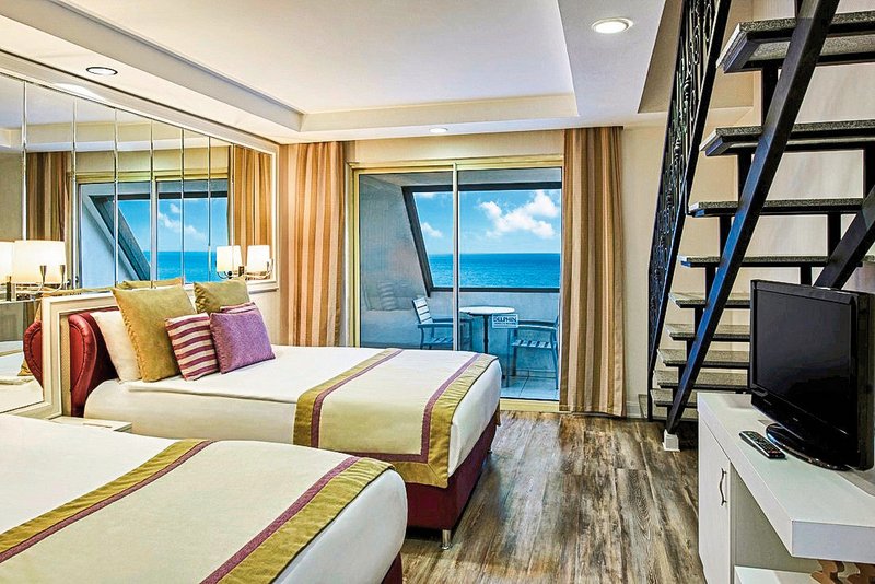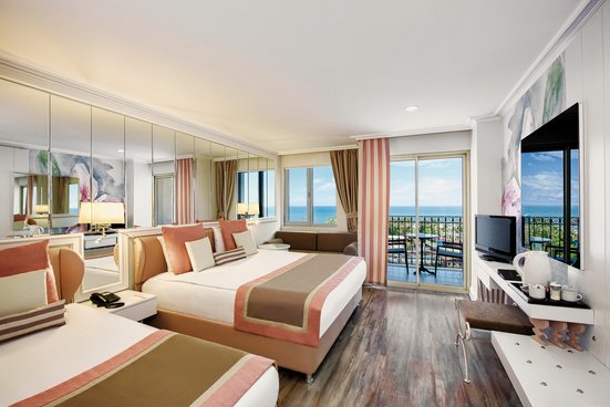 - 26-30 qm, Doppel, Meerblick (seitlich), Couch, 1 Einzelbett, 1 Doppelbett, 1 Bad, Dusche, Haartrockner, Laminatboden, Klimaanlage, zentral gesteuert, Minibar, Auffüllung regelmäßig, Safe, 1 TV (Sat-TV), Balkon, Anzahl Zimmer: 193