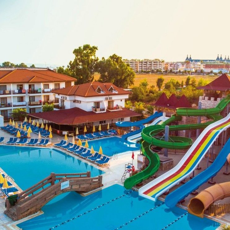 - Am Strand befindet sich Eftalia Island mit Aquapark, Restaurants, Snackcorner, Bars, Disco, Amphitheater, diverse Geschäfte und Kinderpools mit Rutschen (15.4.-31.10., wetterbedingt stundenweise geöffnet). Hier findet auch die gesamte Animation statt.