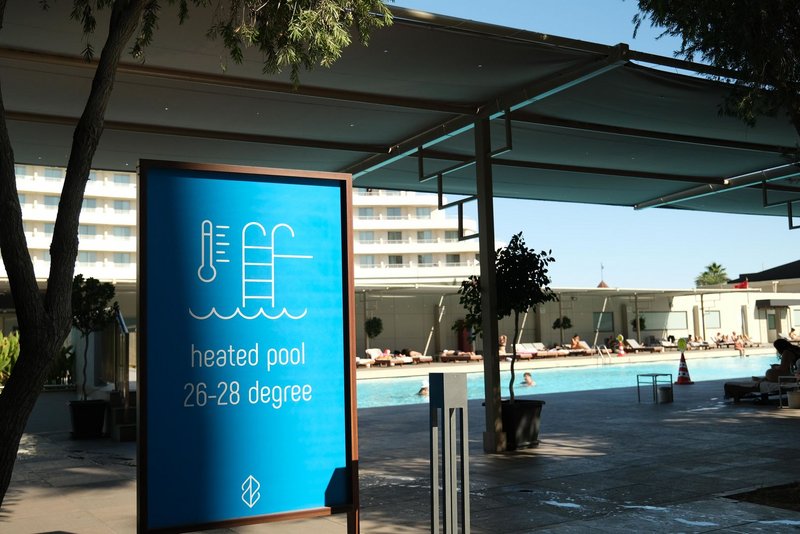 - 1 Pool: ca. 1.4.-31.10., 1.600 qm, Süßwasser, Wasserrutschen: 15 (stundenweise in Betrieb), Sonnenschirme, Liegen, Badetuch