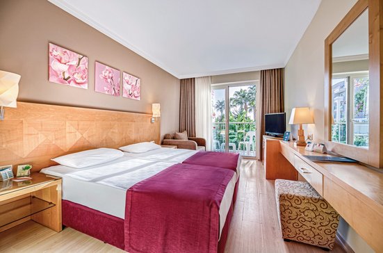 - 21-25 qm, Doppel, Großraum, 1 Einzelbett, 1 Doppelbett, 1 Sofabett, Dusche oder Badewanne, WC, Haartrockner, Klimaanlage, zentral gesteuert, Minibar, Wasser, Safe, TV (Sat-TV), Balkon