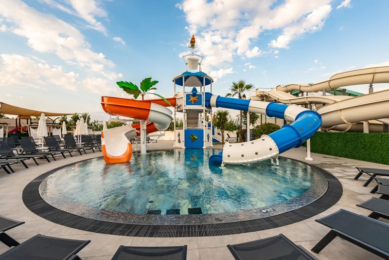 - Kinderpool (außen): Süßwasser, Wasserrutsche