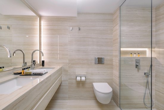 - 51-60 qm, Suite, Meerblick, kombinierter Wohn-/Schlafraum, Ankleidebereich, Sitzecke, Couch, Doppelbett (Kingsize), Whirlwanne, bodengleiche Dusche, separates WC, Bademantel, Badeslipper, Haartrockner, Klimaanlage, Minibar kostenpflichtig, Safe, TV (Smart-TV), Kaffee/Tee, Balkon (möbliert), Kopfkissen-Menü, separater Check-in & Check-out, bei Ankunft im Zimmer Obst, Wein, Wasser