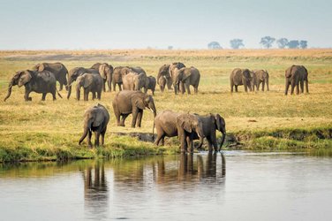 2ᴱ JOUR: Victoria Falls–Parc national de Chobe. Vous quitterez Victoria Falls pour vous rendre à la frontière du Botswana. Bronze: départ pour le célèbre parc national de Chobe, où vous ferez l'après-midi un safari dans le parc à la recherche des éléphants. Silver: à Kasane, vous montez à bord d'un petit avion qui vous transporte dans la région de Savuti. Selon l'heure d'arrivée, le reste de la journée est libre. Nuitée bronze Chobe Bush Lodge ou sim. (PdDS), silver Ghoha Hills Savuti Lodge ou sim. (PdDS)