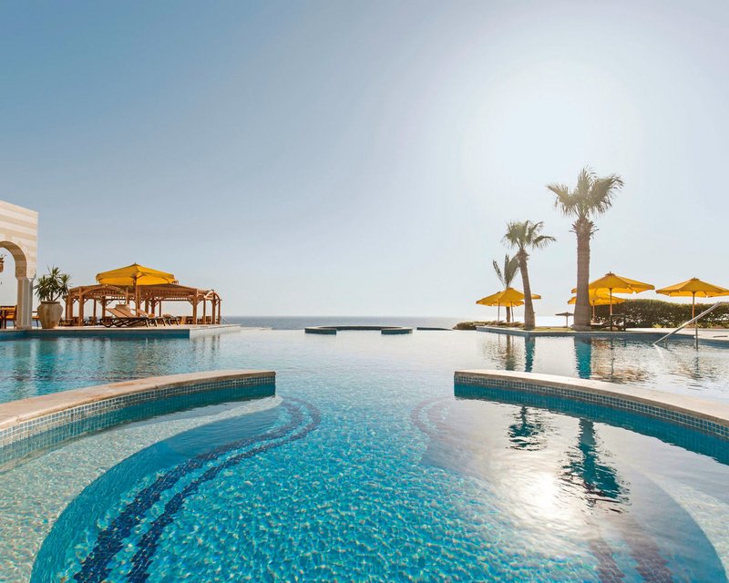Ce complexe exclusif de style arabe contemporain avec des dômes, des arcades et des colonnes abrite uniquement des suites. Il est entouré d’un jardin le long d’une longue plage de sable.