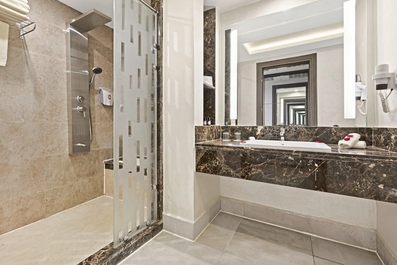 - chambre double, Deluxe, vue sur la mer (en partie), douche, WC, sèche-cheveux, climatisation, mini réfrigérateur, coffre-fort, TV, bouilloire, machine à café, balcon ou terrasse