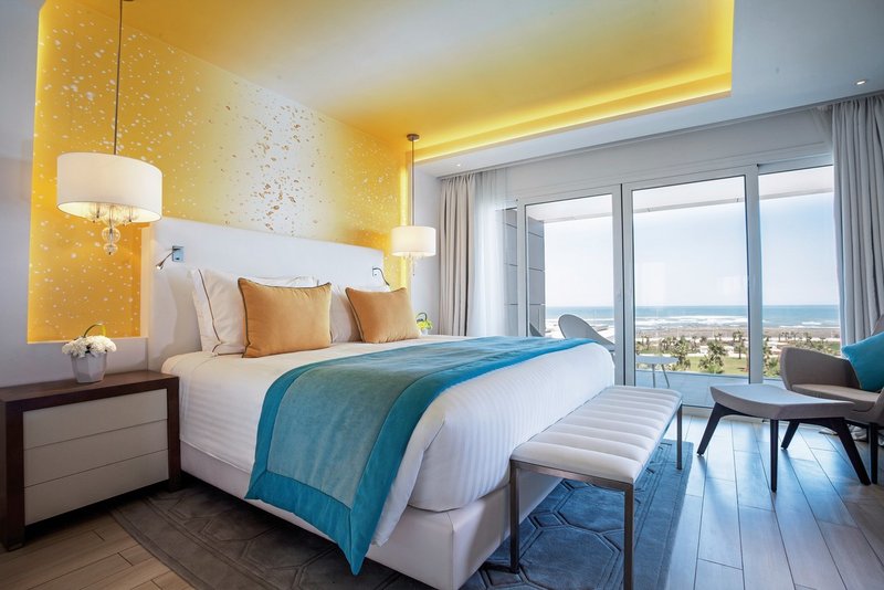 - 26-30 m², chambre double, Deluxe, vue sur la mer (latéral), salon/chambre à coucher combinés, coin salon, bureau, lits double (1 king-size ou 1 lit twin), douche, WC, miroir cosmétique, coffre-fort, TV, Wi-Fi, balcon ou terrasse (meublé)