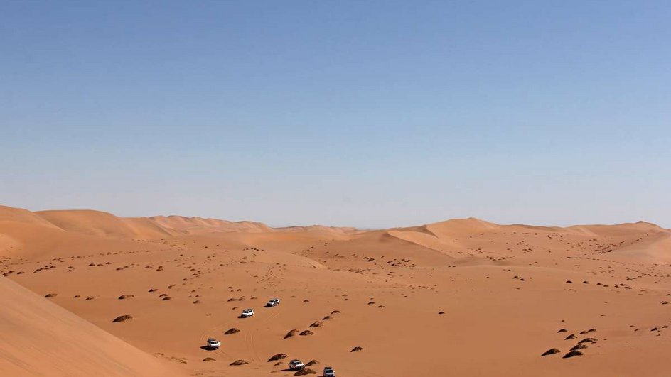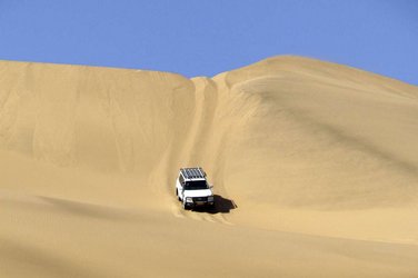 4ᴱ JOUR: Parc national de Namib-Naukluft–Walvis Bay. (± 80–120 km). On surnomme volontiers cette étape «les montagnes russes». Le terrain est souvent glissant et la plus grande concentration est nécessaire pour maîtriser son véhicule. Votre voyage se termine dans l'après-midi à Walvis Bay. (Pd)