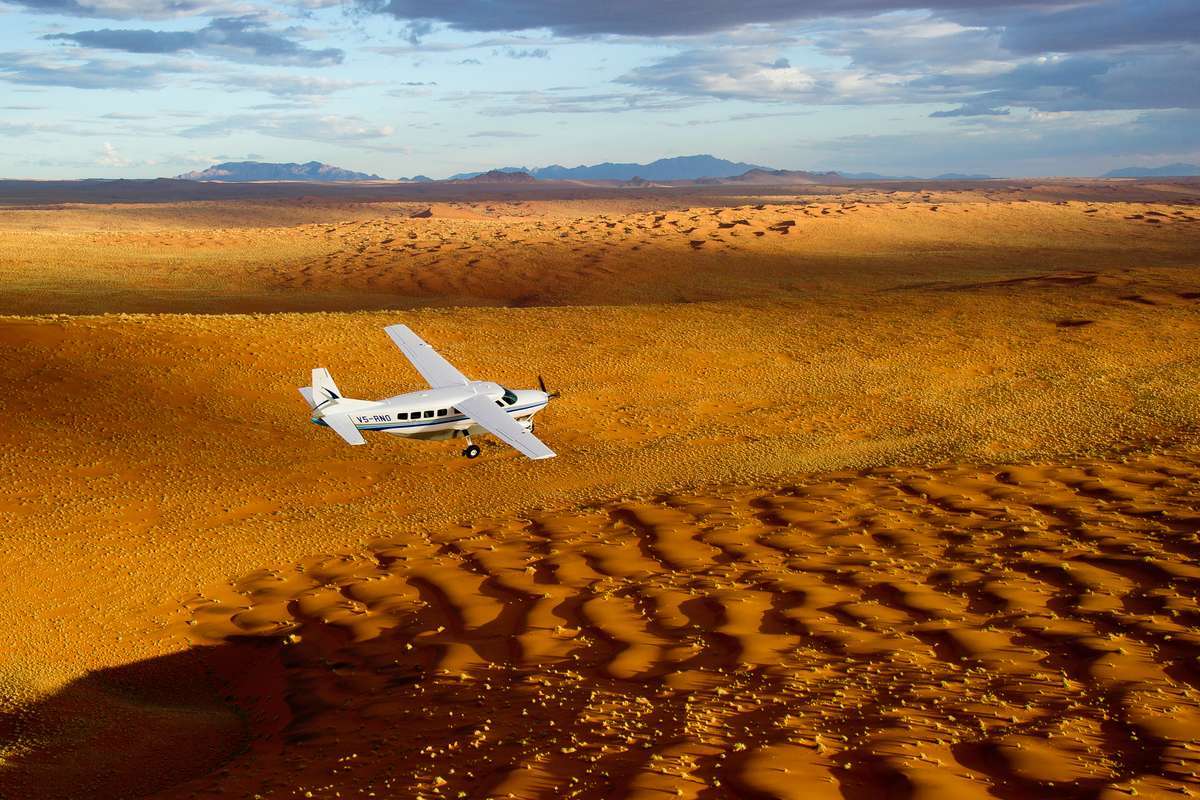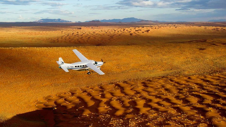 1ᴱᴿ JOUR: Windhoek–Sossusvlei. Arrivée individuelle à l'aéroport international à Windhoek. Vous vous envolerez ensuite à bord d'un petit avion dans le coeur du désert du Namib. Nuitée silver Kulala Desert Lodge ou sim. (S), gold Little Kulala ou sim. (S)