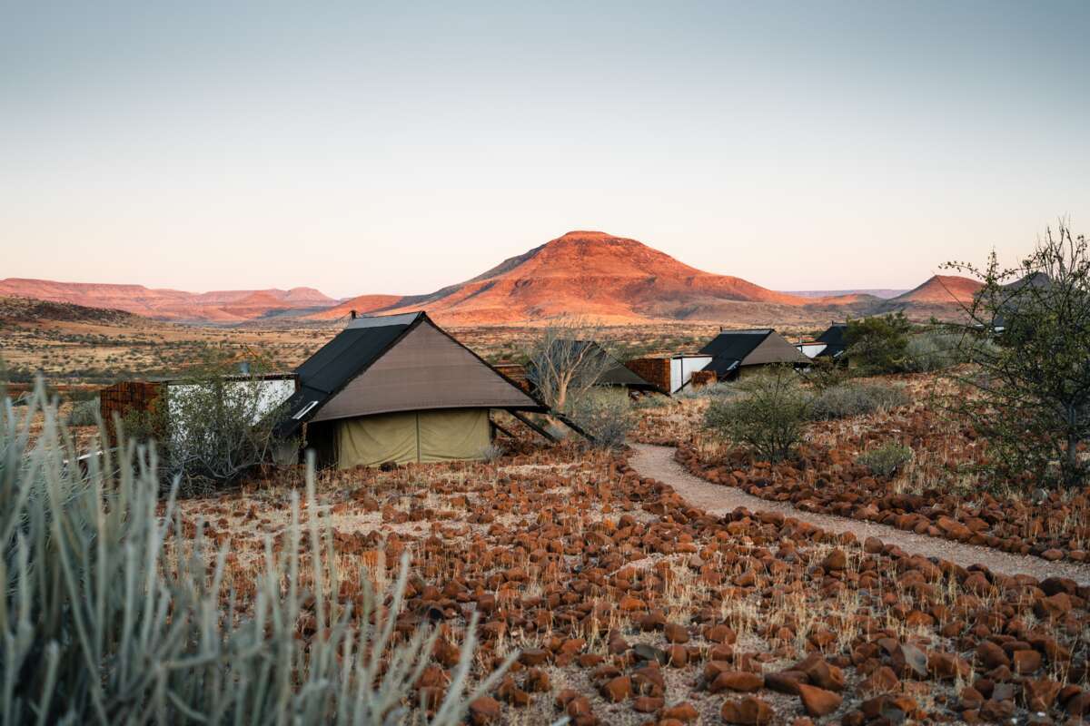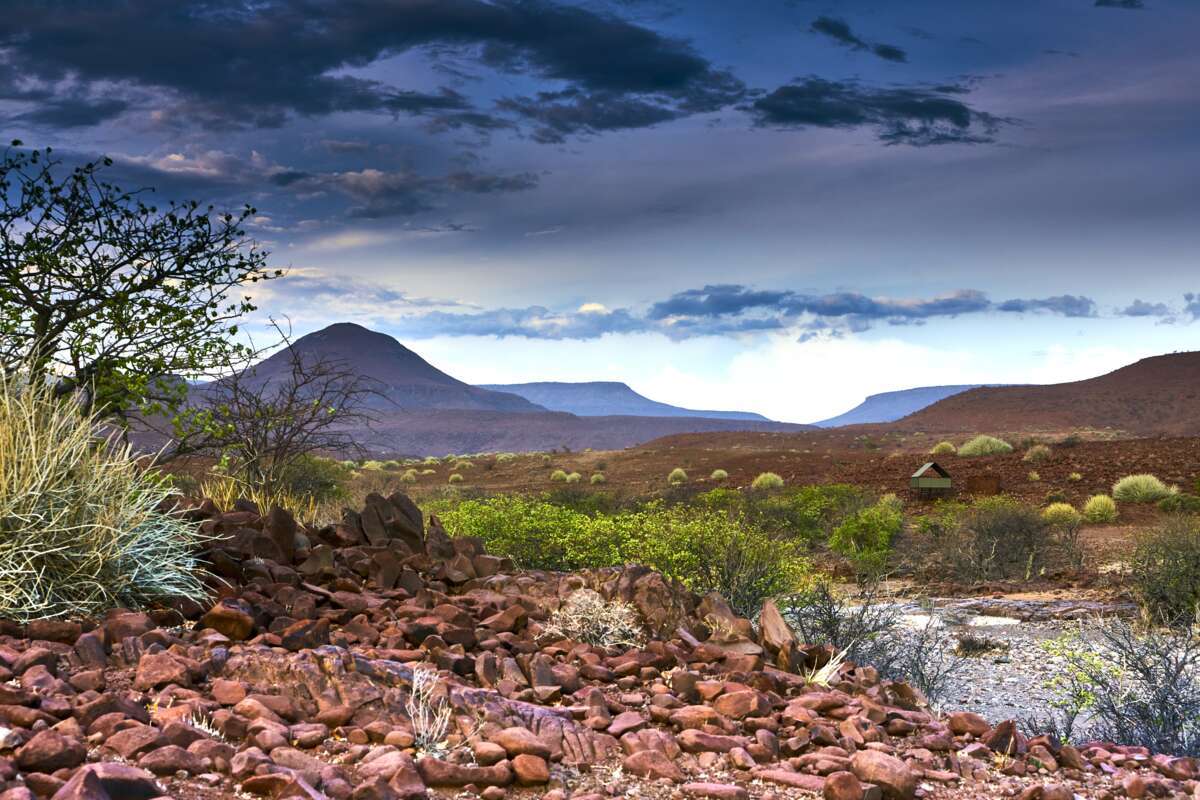4ᴱ JOUR: Montagnes Etendeka. (± 2 km/1 heure). Petite randonnée jusqu'au Etendeka Mountain Camp et transfert au Palmwag Lodge. (Pd)