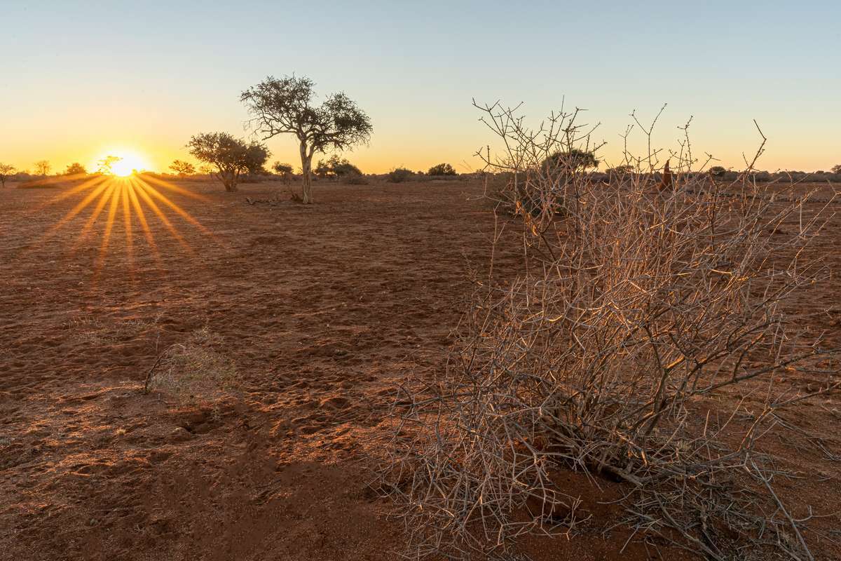 **15. JOUR : Fish River Canyon–Kalahari.** (± 500 km). Le voyage vous emmène dans le désert rouge du Kalahari. Nuitée Adventure Camping silver Intu Africa Camelthorn Lodge ou sim., gold Kalahari Red Dunes Lodge ou sim. (PdS)