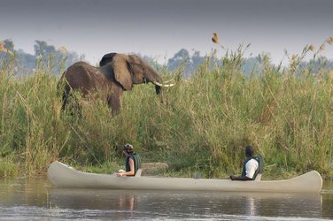 5ᴱ JOUR: Parc national de South Luangwa–Parc national de Lower Zambezi. Safari de bon matin puis vol en petit avion jusqu'au parc national du Lower Zambezi. Celui-si se situe du côté zambien du majestueux fleuve Zambèze. De l'autre côté, au Zimbabwe, se trouve le parc national de Mana Pools. Nuitée bronze Tusk&Mane ou sim. (PdDS), silver Sausage Tree Camp ou sim. (PdDS), gold Lolebezi ou sim. (PdDS)