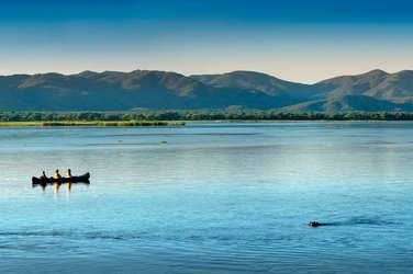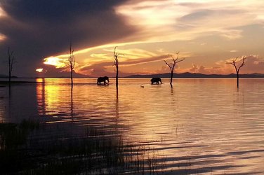 5ᴱ JOUR: Parc national de Mana Pools–Lac Kariba. Après une dernière activité matinale, envol pour le lac Kariba. Votre hébergement trône majestueusement sur une colline et offre une vue à couper le souffle sur le plus grand lac de barrage d'Afrique. Profitez de passer d'agréables moments de détente au bord de la piscine et terminez agréablement votre soirée sur la terrasse panoramique. Nuitée Bumi Hills Safari Lodge ou sim. (PdDS)