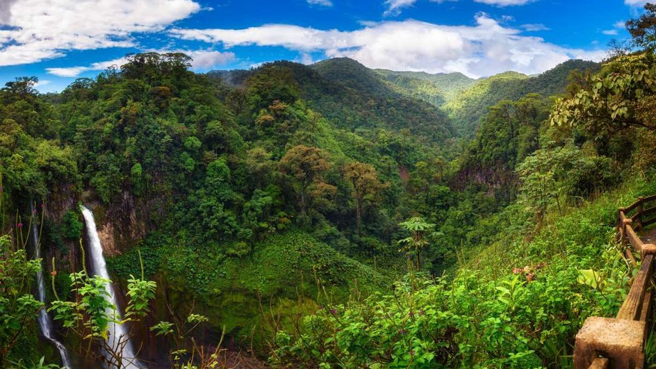 Départ en direction du nord jusqu'à La Fortuna (90 km). La petite ville est idéalement située près du lac de barrage Arenal, au pied du volcan du même nom. Profitez de vous baigner dans les sources thermales de l'hôtel r la montagne de feu.