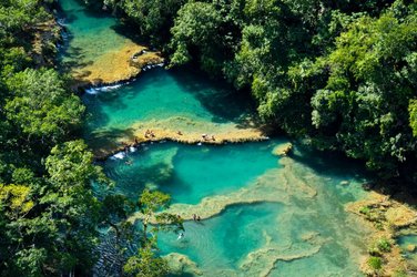 Trajet de retour au Guatemala. En route, visite du biotope de Quetzal, du nom de l’oiseau national du Guatemala. Au cours d’une randonnée, vous découvrez l’écosystème de la forêt de nuage et apprenez beaucoup de choses sur la flore et la faune locales. Le lendemain, une route sinueuse et cahoteuse vous mène à Semuc Champey, un pont en calcaire naturel d’environ 300 m de long sur lequel se trouvent des piscines naturelles en terrasses. Profitez d’une baignade et faites une randonnée jusqu’au point de vue.