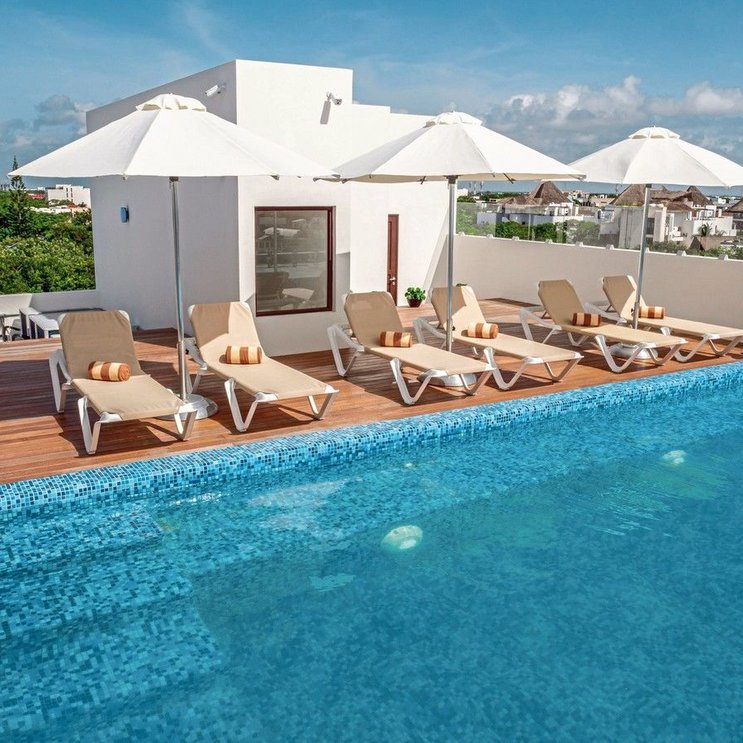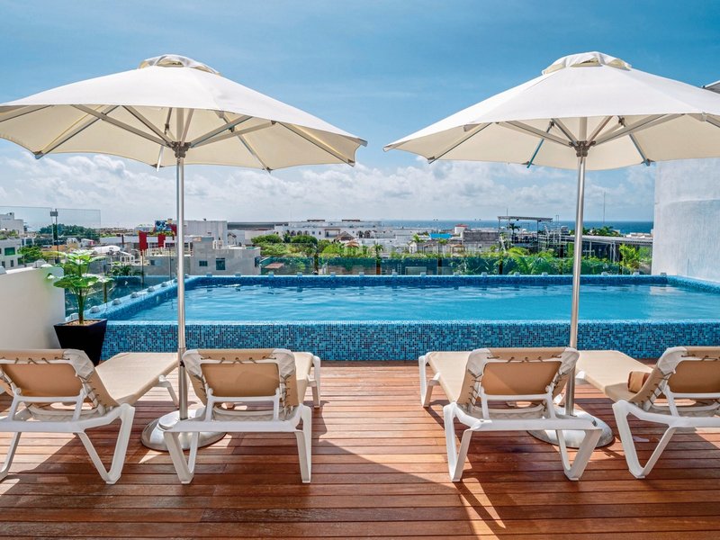 - 1 piscine : sur la terrasse sur le toit, parasols, transats, serviette de bain