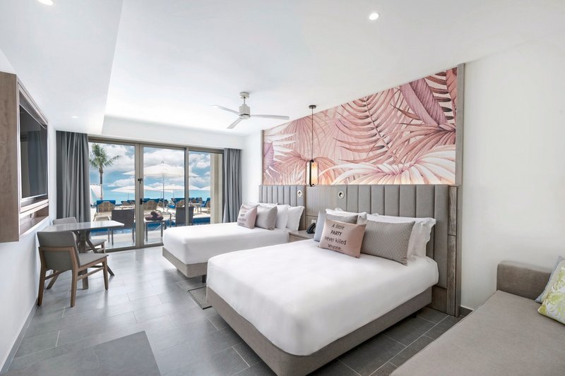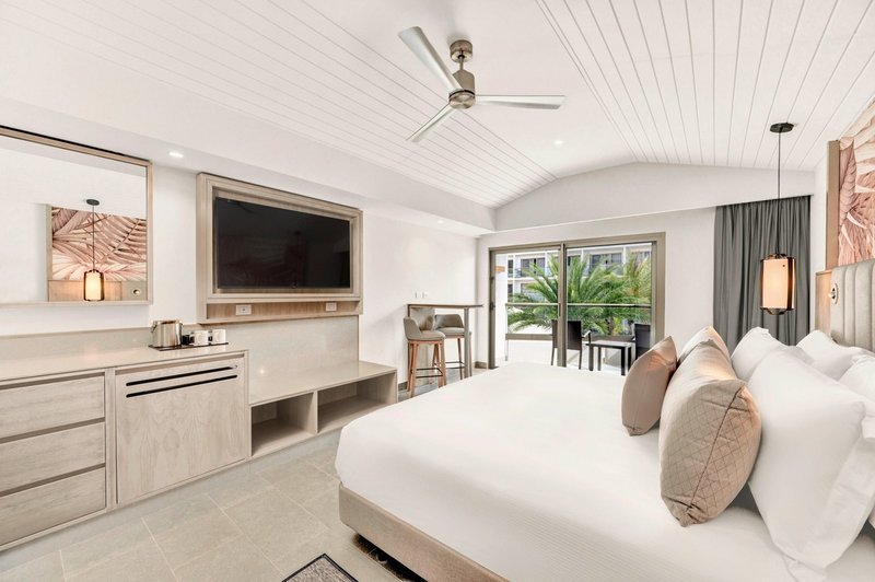 - 26-30 m², chambre double, vue sur la piscine, moustiquaires, 2 lits double (queen-size), douche à effet de pluie, peignoir, sèche-cheveux, miroir cosmétique, carrelage, climatisation, réglage individuel, ventilateur, minibar, soft drinks, eau, coffre-fort, TV (TV par satellite), Wi-Fi, balcon (meublé)