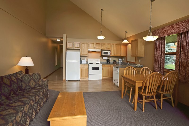 - 46-50 m², 1 chambre à coucher séparée, 2 lits double (queen-size), douche ou baignoire, WC, TV, Wi-Fi, cuisine, coin repas, bouilloire, micro-ondes, café/thé