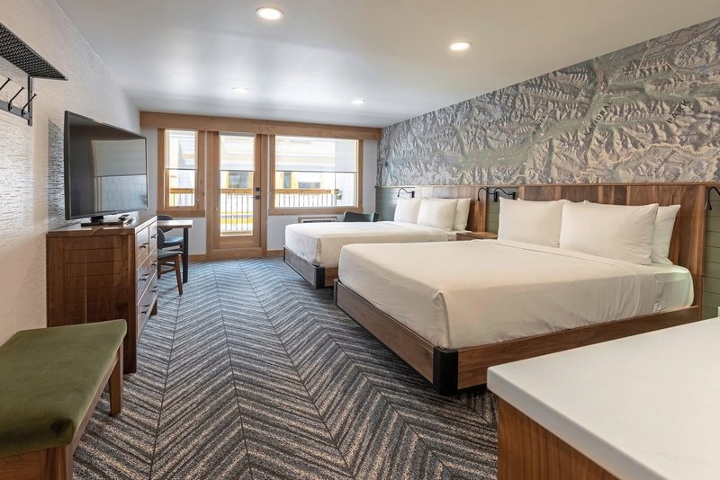 • 2 lits double (queen-size), douche ou baignoire, WC, sèche-cheveux, chauffage, mini réfrigérateur, TV, micro-ondes, machine à café, Evier