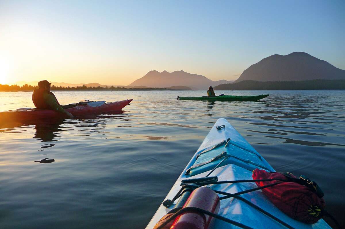 Tofino a beaucoup d'activités à proposer. Aujourd'hui, une excursion combinée de quatre heures en kayak et à pied dans le spectaculaire Clayoquot Sound est prévue pour vous - une expérience inoubliable (le début de l'excursion varie en fonction des marées). Entouré par la nature, vous naviguerez en kayak sur la mer le long de la côte et ferez une randonnée dans l'une des plus grandes forêts boréales humides du monde. De nombreux sentiers de randonnée mènent le long de grands arbres à travers une verdure luxuriante.