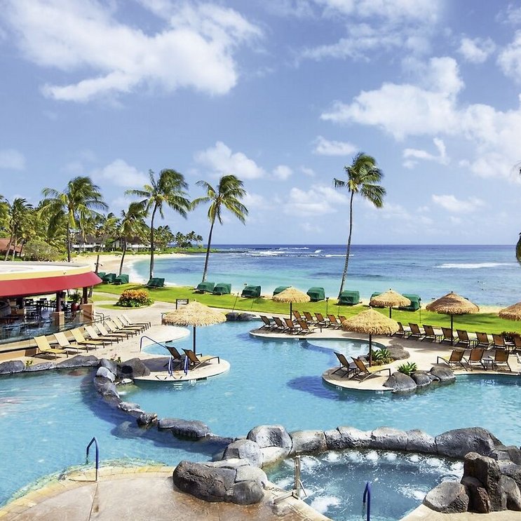 Le resort est magnifiquement situé sur la côte sud de Kauai, à proximité de la petite ville de Koloa Town. Les petites rues invitent à la flânerie et à la rêverie.