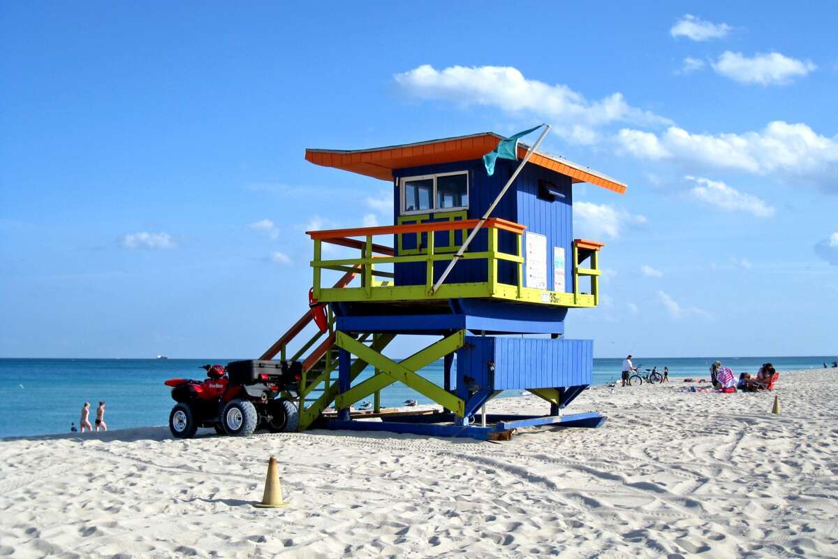 Miami Beach se trouve à environ six kilomètres à l'est de Miami sur une péninsule avancée et offre à ses visiteurs un vaste programme : flânez le long d'Ocean Drive, visitez le quartier Art déco ou profitez simplement d'une journée de détente sur la vaste plage de sable. Les noctambules se lancent dans la légendaire vie nocturne de South Beach, où une foule internationale de fêtards s'amuse jusqu'au petit matin dans des salons de cocktails branchés et des clubs mondains de renommée mondiale.