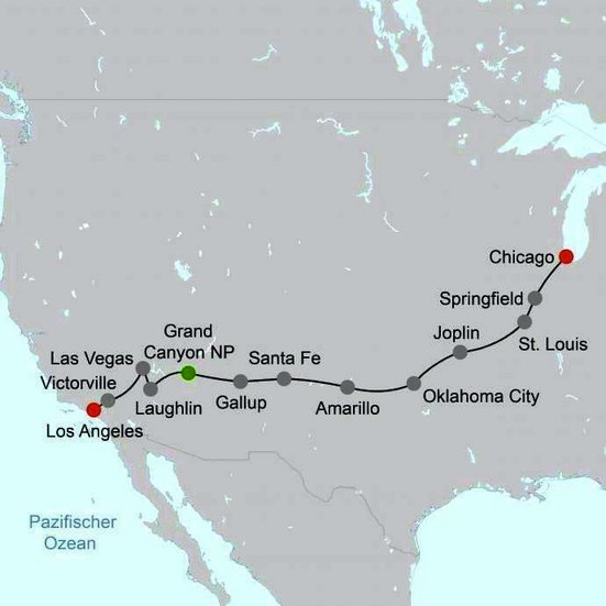 Huit États et près de 4000 km séparent Chicago de Los Angeles. De la dernière demeure d'Abraham Lincoln à Springfield, Illinois, aux steaks les plus juteux du Texas, en passant par le fertile Oklahoma, la Route 66 traverse le cœur de l'Amérique.