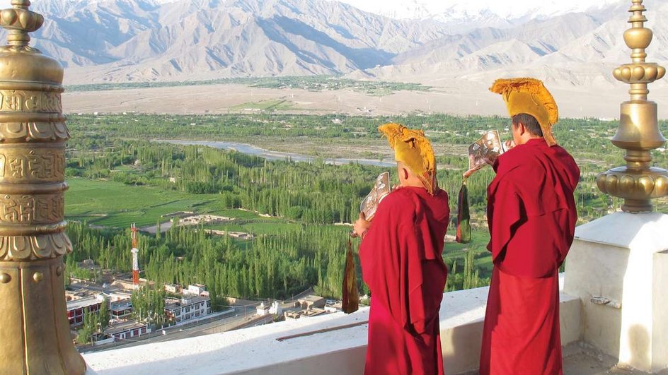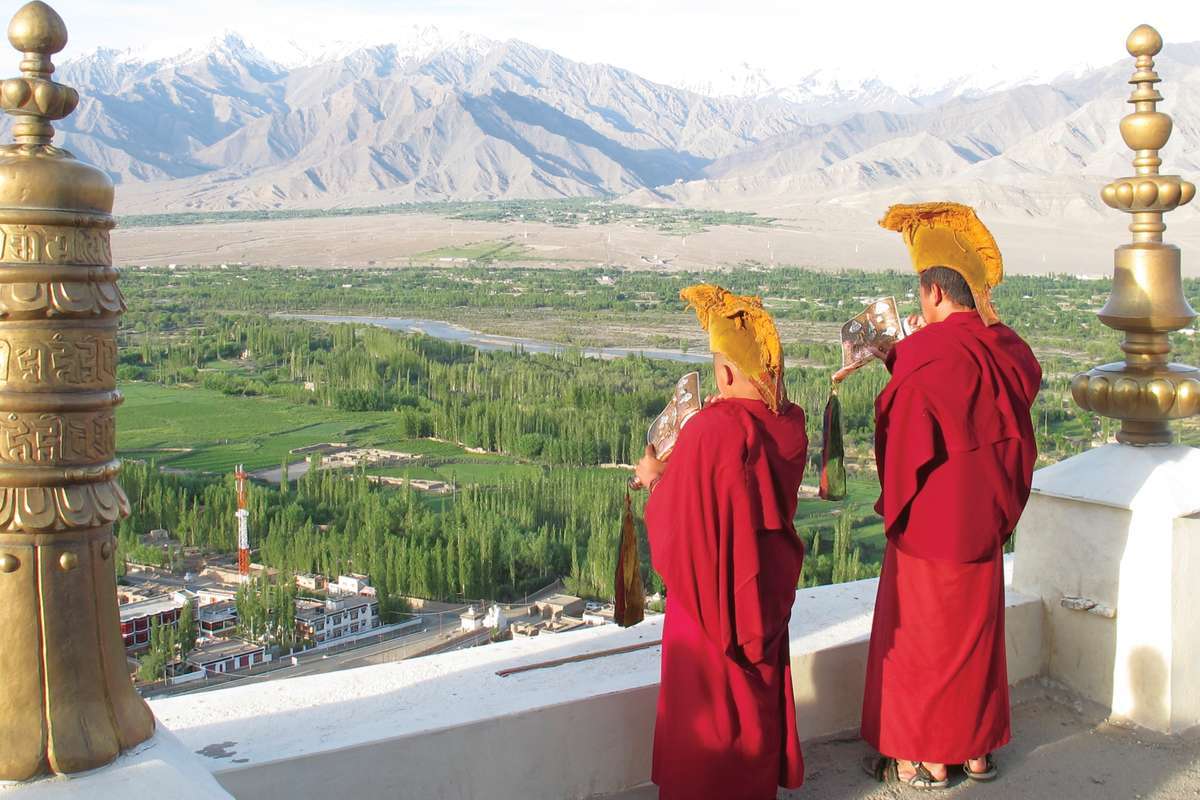 Le matin, temps libre ou visite du jardin d'herbes aromatiques du couvent de religieuses de Nyerma. Trajet jusqu'au monastère de Matho, célèbre pour son impressionnante collection de thangkas anciennes. La prochaine destination sera la ville de Leh avec son imposant palais au-dessus d'un labyrinthe de ruelles. Vous découvrirez à pied la vieille ville, le bazar animé et profiterez de la vue magnifique du Shanti Stupa.