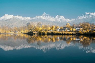 Un court vol intérieur vous amène à Pokhara, la ville située sur les rives du lac Phewa. C'est le point de départ des trekkings dans la région de l'Annapurna. La vue sur le massif montagneux est exceptionnelle et enchanteresse en combinaison avec les lacs. Pokhara offre un superbe mélange de nature et de culture. L’après-midi, vous visitez le temple Barahi en bateau.
