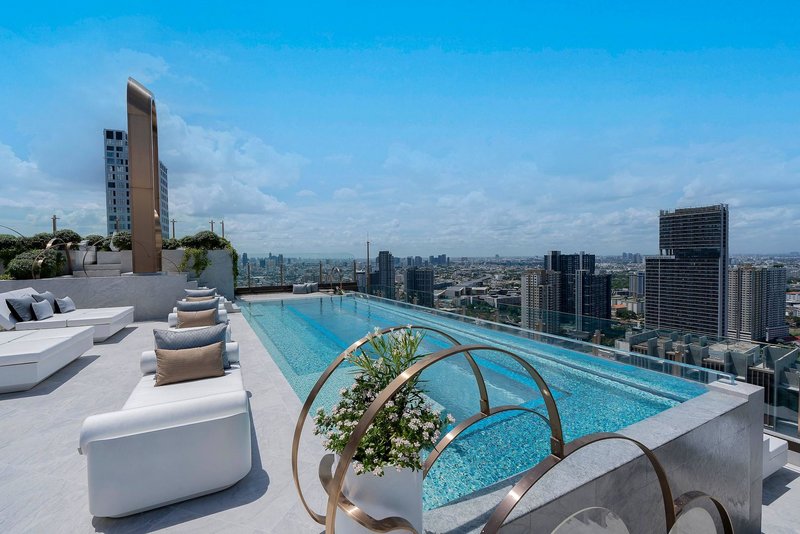 Un hôtel au concept design remarquable - votre domicile élégant dans le quartier On Nut. Flotter ou nager au septième ciel : La piscine à débordement avec fond transparent sur le toit est spectaculaire.