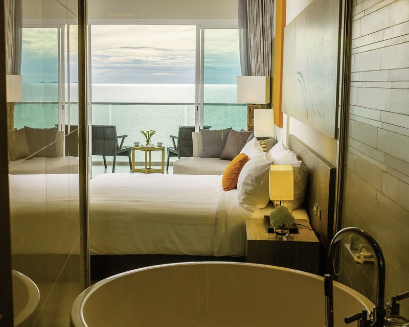 - 101-120 m², suite, vue sur la mer, convient aux personnes allergiques, 2 chambres à coucher séparées, 1 séjour séparé, coin salon, bureau, douche, baignoire, douche à effet de pluie, peignoir, chaussures de bain, sèche-cheveux, climatisation, réglage individuel, minibar payant, coffre-fort, planche à repasser, fer à repasser, TV (smart-TV), bouilloire, machine à espresso, café/thé, balcon, espace de check-in et check-out séparé, accès au Club-Lounge, petit-déjeuner au club lounge, boissons gazeuses au club lounge, en soirée, boissons alcoolisées au club lounge, thé/café et pâtisseries l'après-midi, collations en soirée