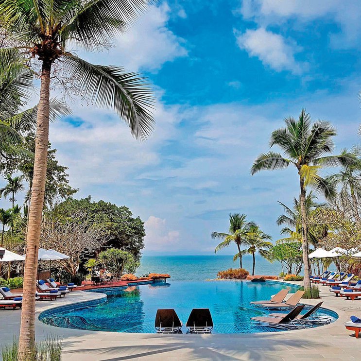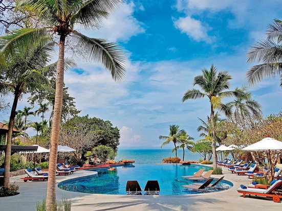 Comme dans le jardin d'Eden, entourées de verdure, les chambres et les villas sont à l'ombre des palmiers. La vue panoramique sur le golfe de Thaïlande est unique. Un havre de paix et de luxe à savourer.