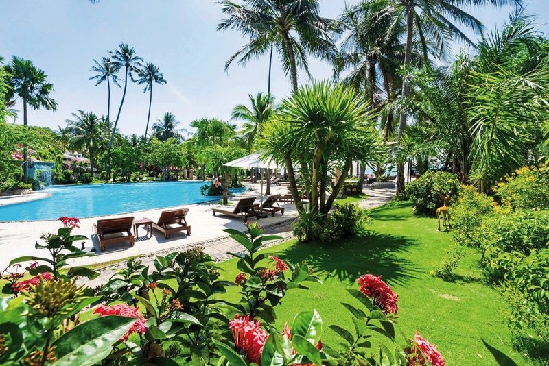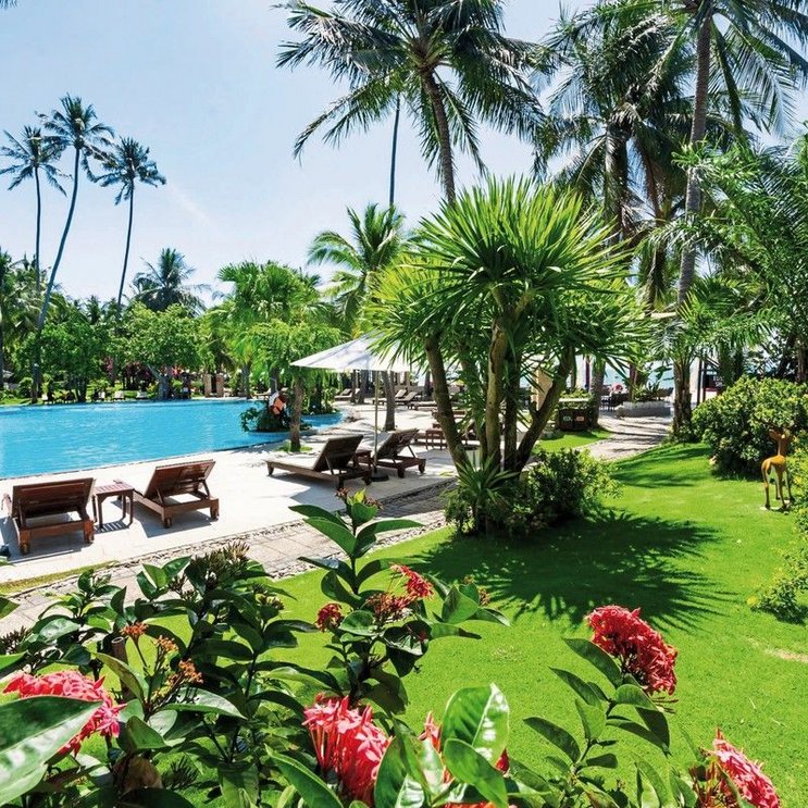 Jardin avec de nombreux cocotiers